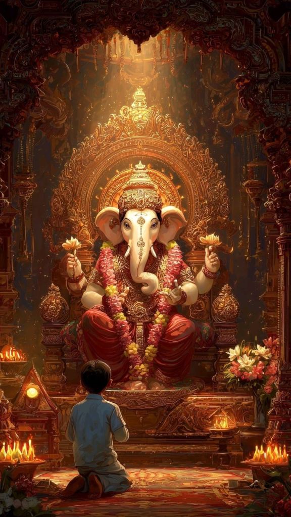 दुर्वांची मी जुडी वाहतो, मोदक लाडू अर्पण करतो,
